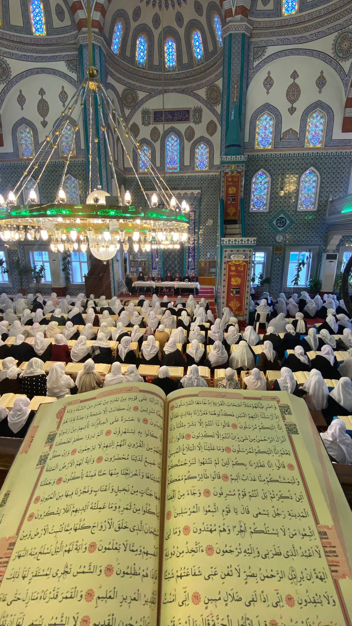 Programa 800’ü aşkın kadın beyaz başörtüleri ile katıldı. Çiftlik Kız Kuran Kursu’nda artık bir gelenek haline gelen hatim duası programında Kur’an-ı Kerim tilaveti, ilahiler ve zikirler yer aldı, Ramazan ayının manevi atmosferi içinde dualar edildi.
