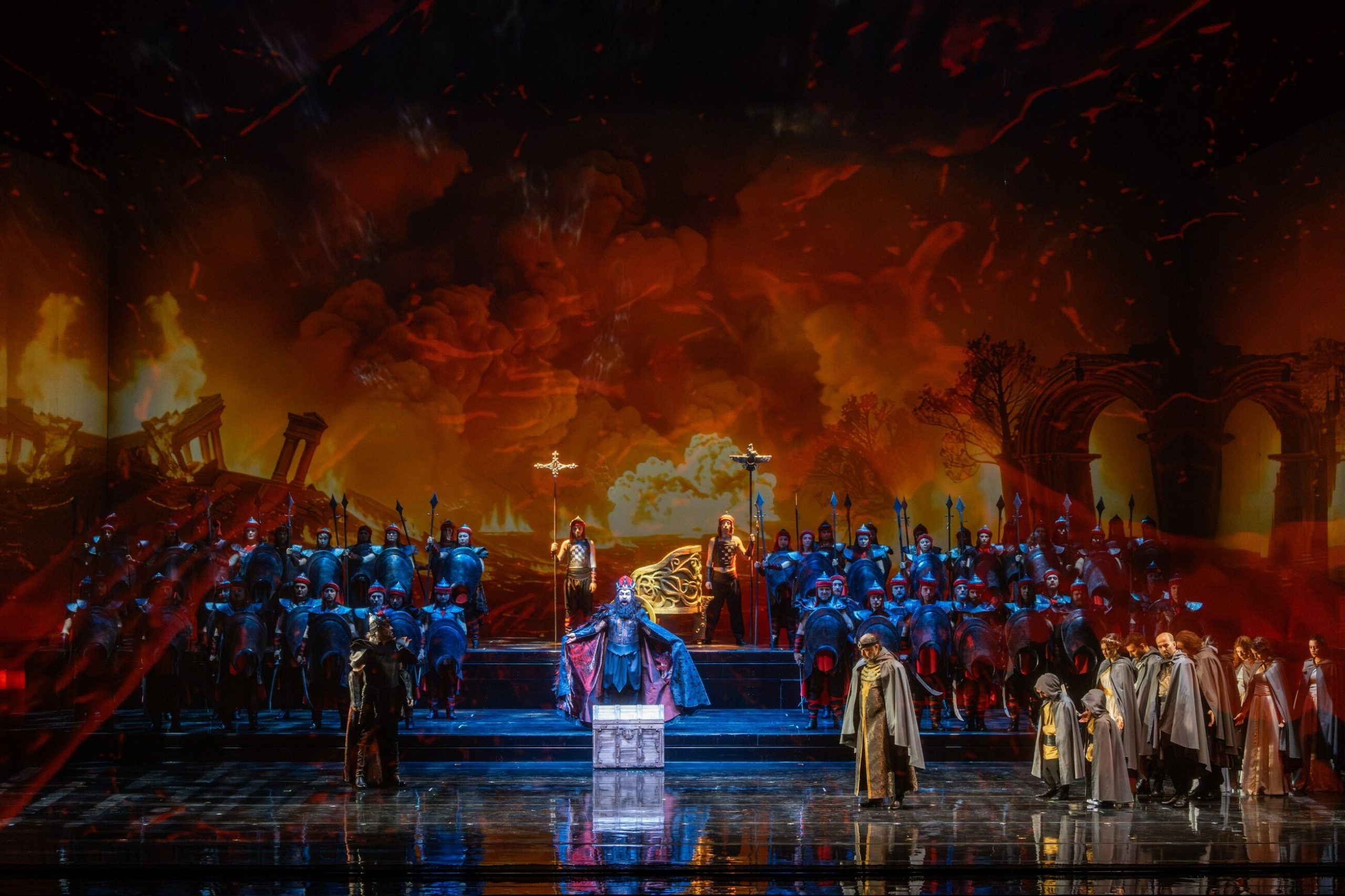 İstanbul Devlet Opera ve Balesi Orkestrasını İbrahim Yazıcı’nın yöneteceği eserin dekor ve görsel tasarımı Efter Tunç’a, kostüm tasarımı Olcay Engin Kaymaz’a, ışık tasarımı Cem Yılmazer’e, video tasarımı Aisha Hajiyeva’ya, koreografisi Berk Sarıbay’a ait. İDOB korosunun şefi ise Anıl Aydın. Operada Edusa rolünde Gülbin Günay, Evren Işık Yasemin, Halludas rolünde Mert Süngü, Ufuk Toker, Krezüs rolünde Göktuğ Alpaşar, Gökhan Ürben, Namirek rolünde Nesrin Gönüldağ, Asude Karayavuz. Kyros rolünde Yoel Keşap, Hüseyin Likos, Solon rolünde Caner Akgün, Kevork Tavityan, Karuna rolünde Barbora Hitay, Deniz Likos, Kufu rolünde Berk Dalkılıç, Bülent Külekçi, Aryan rolünde Alper Göçeri, Murat Güney, Nakata rolünde Kenan Dağaşan, Emre Güngör, Mehte rolünde Erencan Karadi, Burak Kul, Sandanis rolünde Arda Durgut, Ufuk Karakoç, Aryenis rolünde Efe Doğrukul, Bahadır Özkoca, soytarı rolünde Uğur Etiler, Okan Fidan, muhafız rolünde Mehmet Tükel Acar, Talip Savranbaşı, ulak rolünde Kılıç Aslan, Emre Parlar dönüşümlü olarak sahnede olacak.